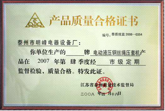 鋼絲繩壓套機(jī)質(zhì)量合格證書