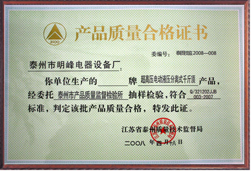 本單位生產(chǎn)的產(chǎn)品通過質(zhì)量監(jiān)督局檢驗(yàn)合格并頒發(fā)了合格證書。